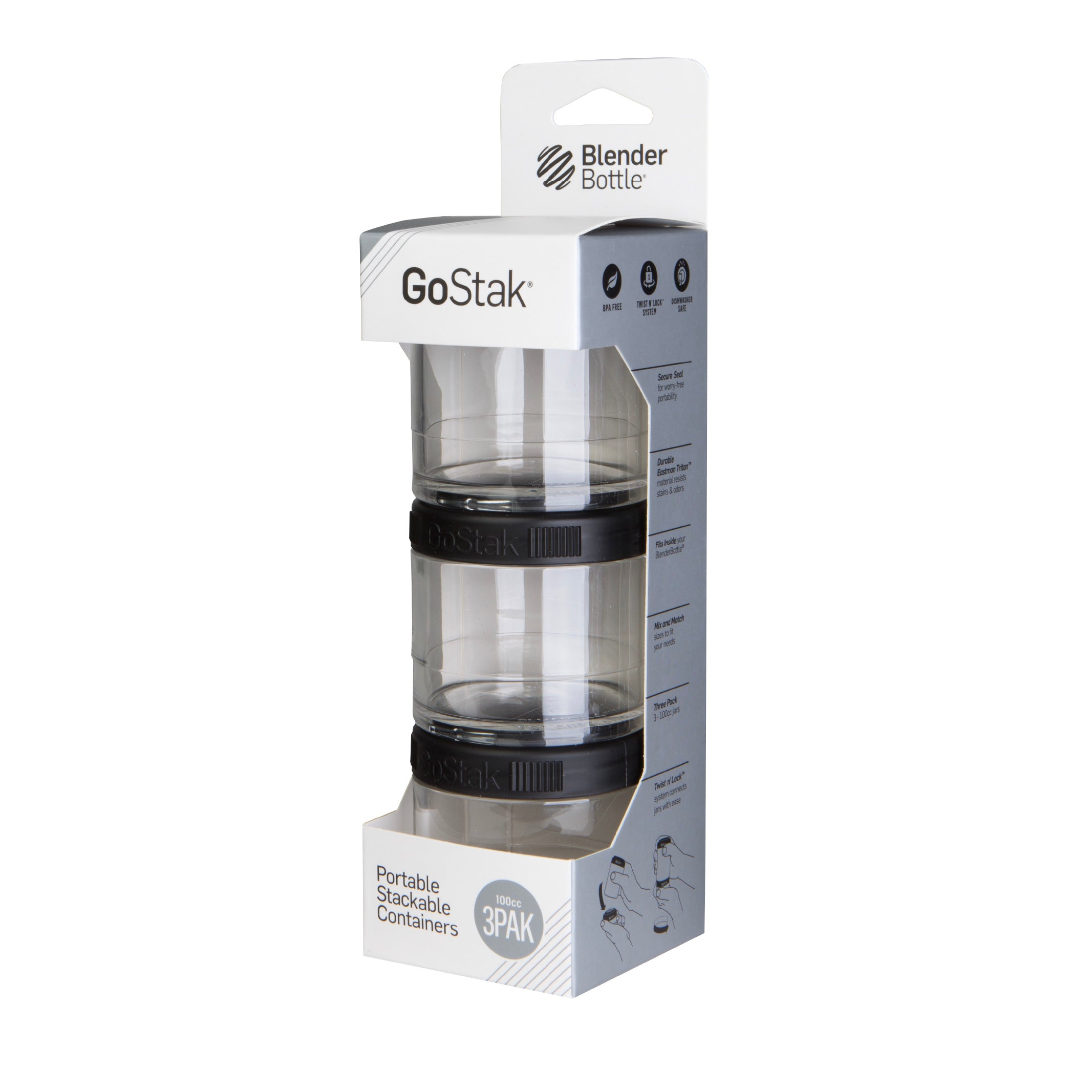 The BlenderBottle® GoStak™ is the perfect organizer for your daily bariatric supplement regimen. These portable, compact, and convenient jars can carry several days’ worth of your Celebrate supplements. Use it for your daily commute to work, your workout sessions at the gym, or for travel.