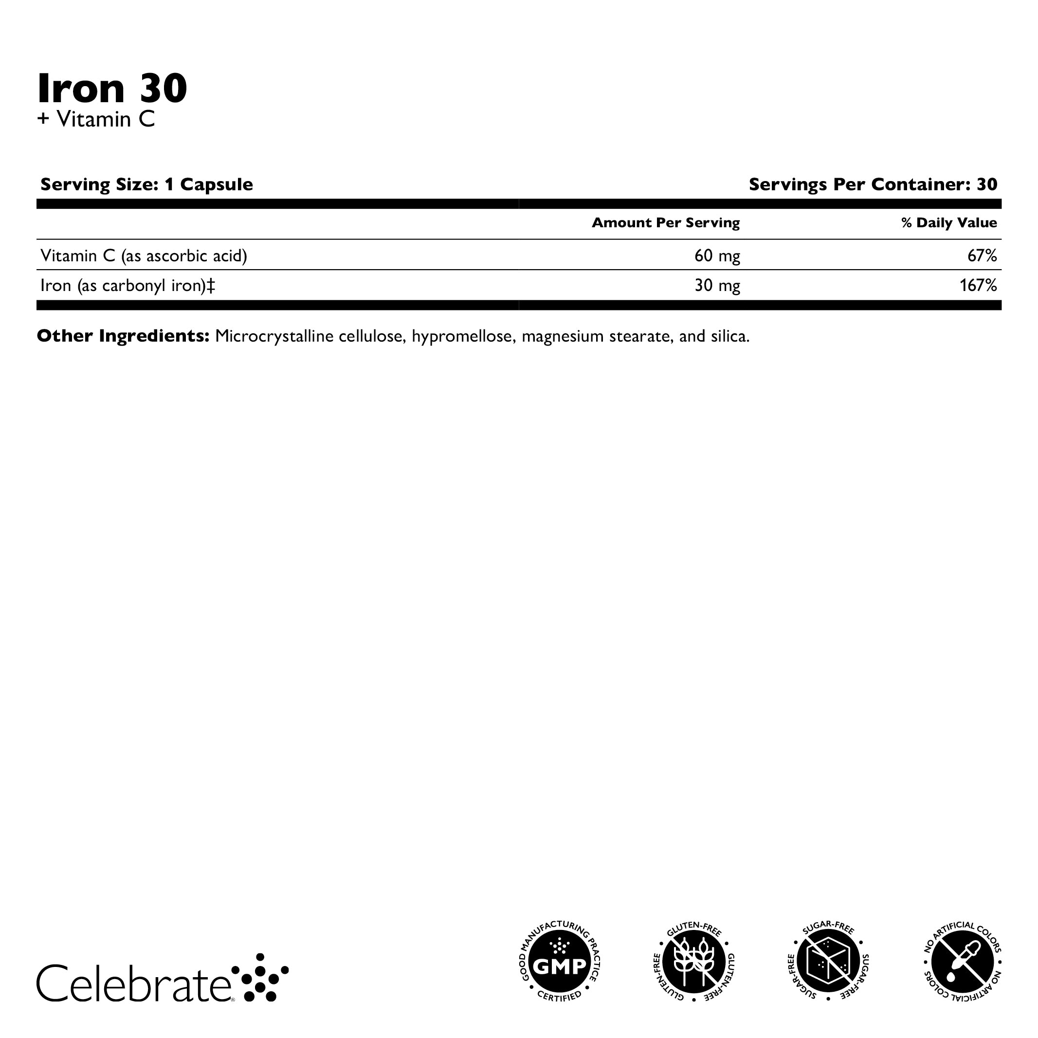Our Iron + C capsules deliver 30 mg of iron plus vitamin C and are perfect for post-surgery patients looking for a specific dose of iron.